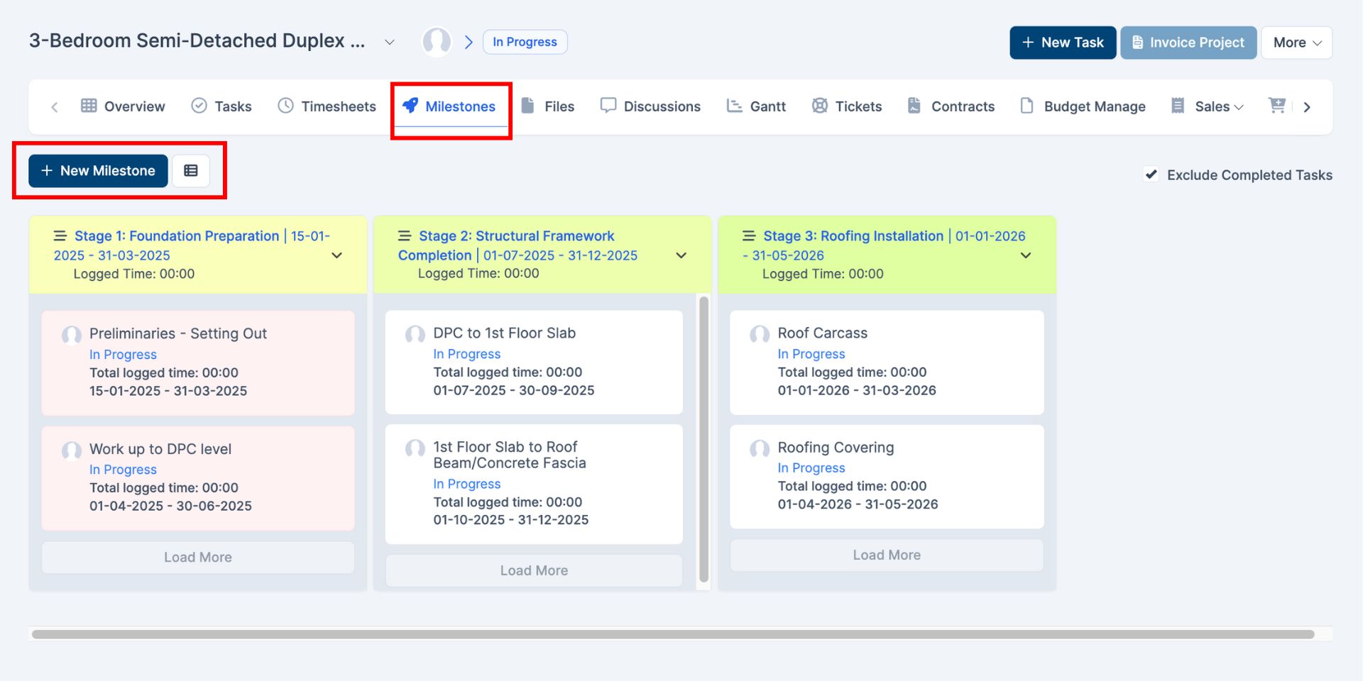 Best Practice: Define milestones to reflect major deliverables or phases in real estate projects. This ensures progress can be measured against significant construction stages, enhancing accountability and client reporting.